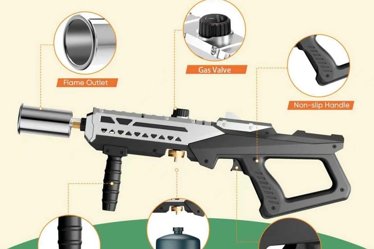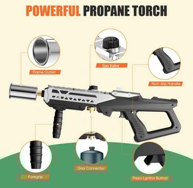 Portable kitchen torch with adjustable flame—perfect for BBQ, searing steak, welding, camping, and lighting charcoal. Compact, powerful, and safe to use (tank not included).