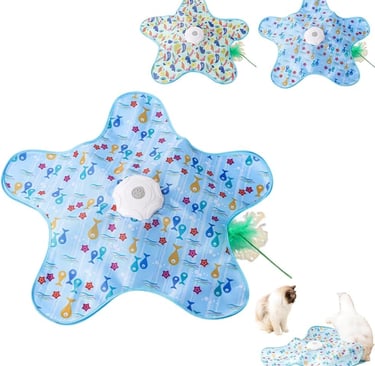 Motion-activated cat toy with concealed moving feathers inside a bag and a squeaky mouse sound—perfect for boosting exercise, stimulating hunting instincts, and keeping your cat entertained.