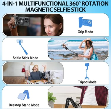 Compact, portable selfie stick with 360° rotation, wireless remote, and tripod stand—compatible with iPhone MagSafe and Android for perfect selfies anytime, anywhere.