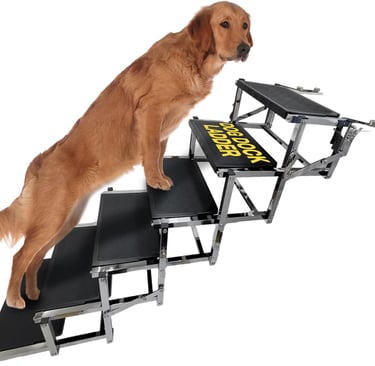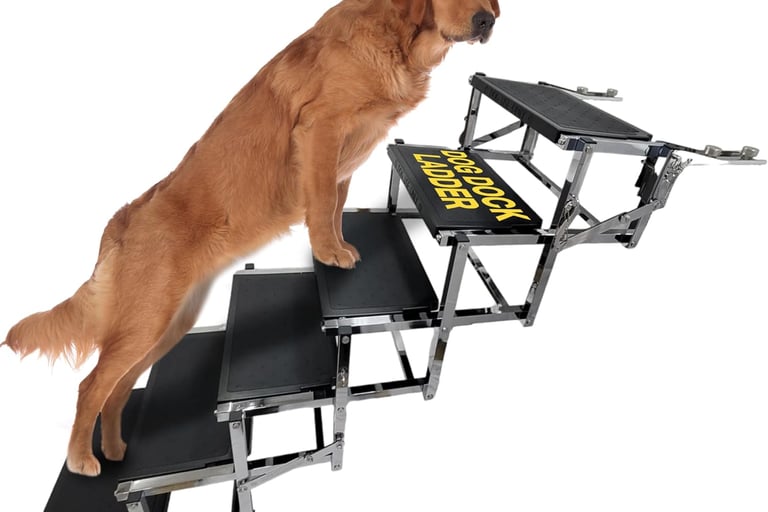 Durable 6-step dog ladder made from stainless steel and marine-grade aluminum—easy to install and store, ensuring safe water entry and exit for your pets.