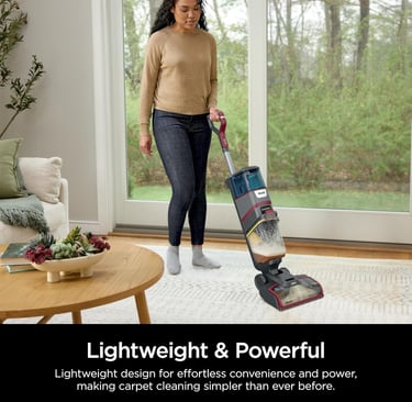 Lightweight, powerful upright carpet cleaner—removes dirt, grime, pet hair, and odors. Ideal for carpets and pet cleaning, featuring effective shampooing and easy-to-use design.