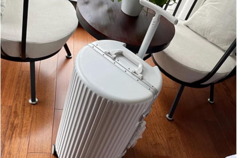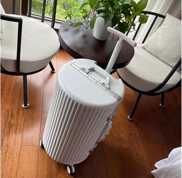 Stylish 22-inch Nero suitcase with durable aluminum frame, smooth wheels, and sleek cylindrical design—perfect for business travel and wear resistance.