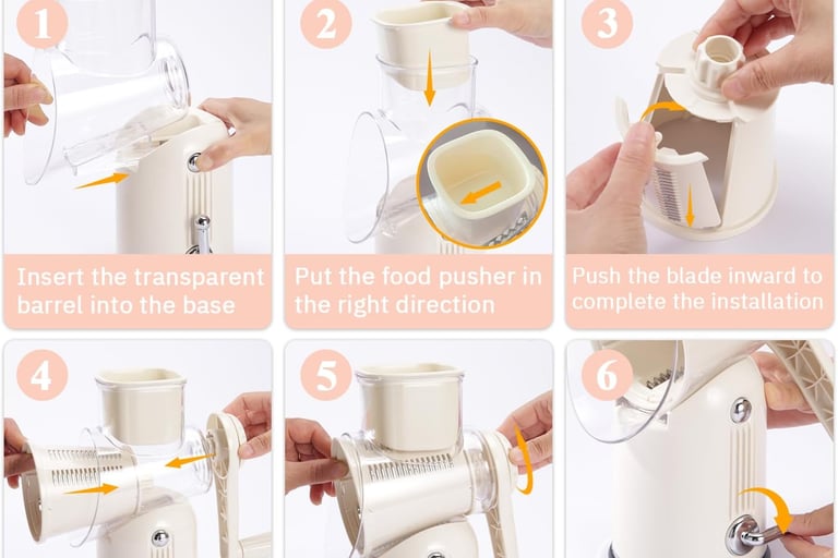 Manual cheese grater with handle, 5 replaceable stainless blades, strong suction base, cleaning brush, and bonus storage box—perfect for slicing cheese and vegetables easily.
