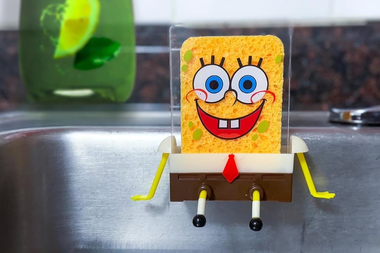 Adorable cartoon-style sink sponge holder with draining design—keeps your kitchen tidy, dry, and adds a fun touch to your cleaning routine.