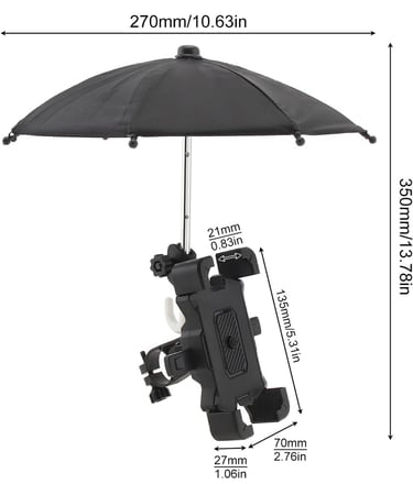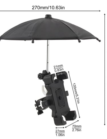 This creative bicycle phone holder comes with a built-in sun umbrella for all-weather protection. Shockproof and rainproof, it firmly mounts to 0.78"–0.98" handlebars and fits phones 2.55"–3.34" wide. Ideal for sunny or rainy rides, it keeps your device secure and screen visible.