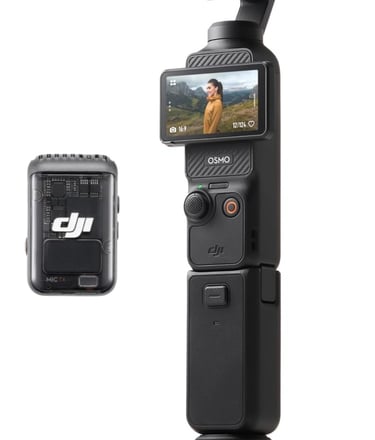 Capture cinematic vlogs with the DJI Osmo Pocket 3. Featuring a large 1'' CMOS sensor, 4K/120fps video, and 3-axis stabilization, it delivers crisp footage even on the move. With face tracking and a built-in mic, it's your all-in-one tool for professional content creation.