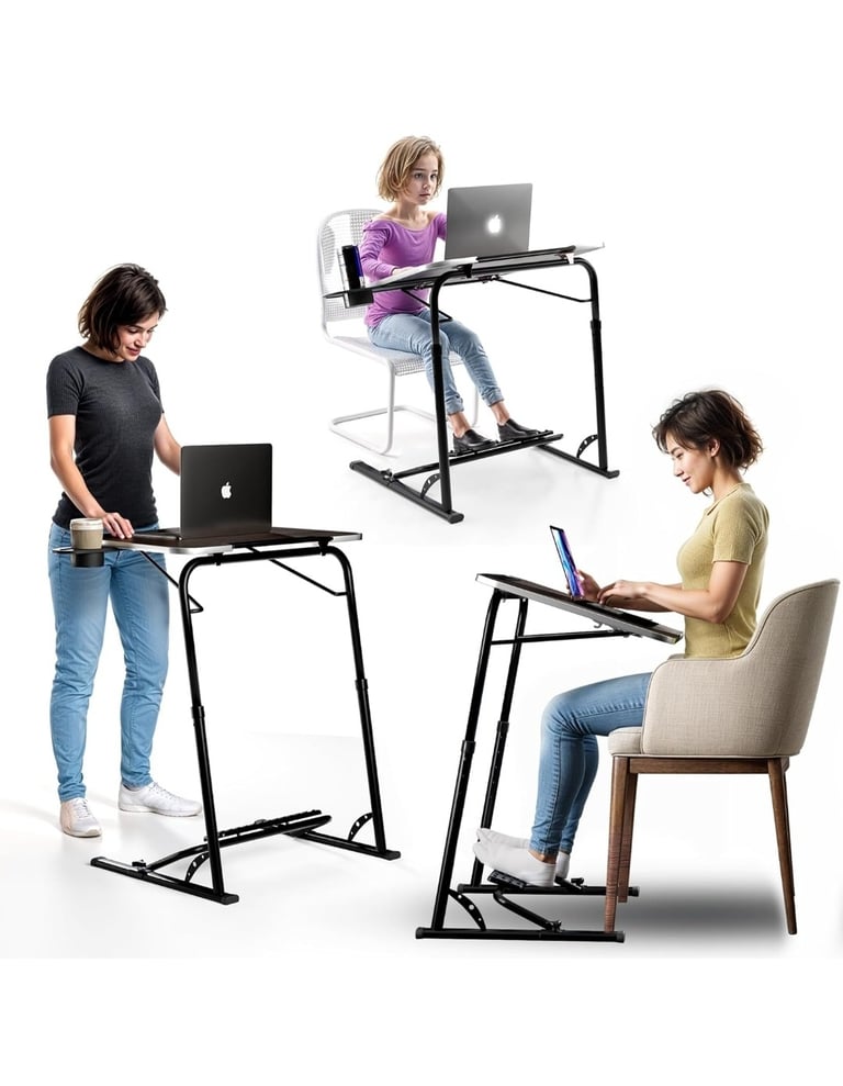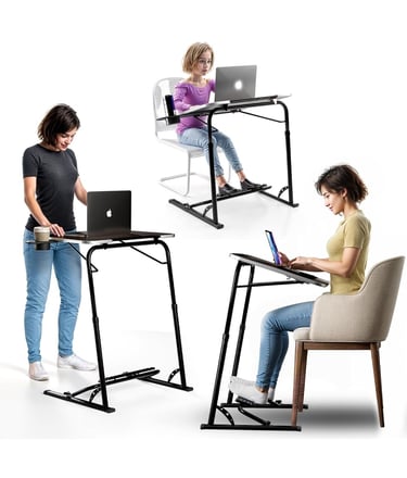 Make working, eating, or watching TV from your couch easier with this FoldWise upgraded folding TV tray table. Extra-large, sturdy, and adjustable in height and angle, it includes useful features like a footrest, cup holder, and iPad holder for ultimate convenience.