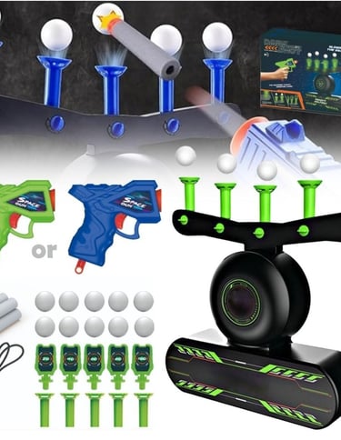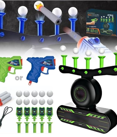 Turn playtime into action with this glow-in-the-dark hover target shooting set! Kids can enjoy exciting floating target challenges using safe toy guns in a glowing environment. Ideal for indoor fun, improving aim, and active screen-free entertainment.