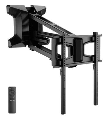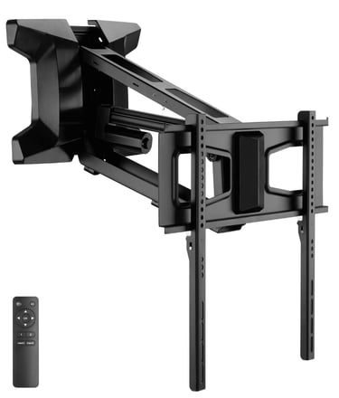 Effortlessly position your TV with this motorized pull-down wall mount from MOUNT-IT! Perfect for placing your TV above the fireplace, it features remote control adjustment, height customization, swivel capability, and supports up to 77 lbs. Compatible with VESA 600x400 for wide TV models.