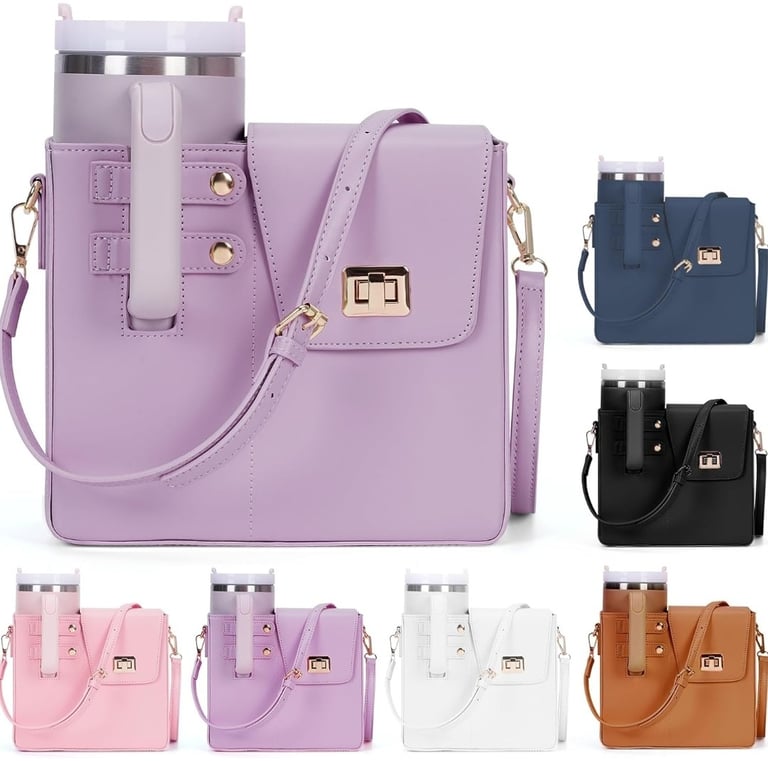 Crossbody cup bag for Stanley bottles, purse combo, adjustable, stylish.