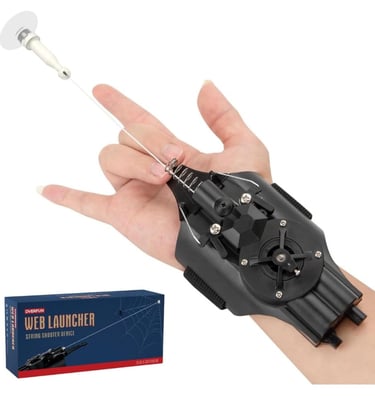 Unleash your inner superhero with this electric reel-in spider string shooter! Designed for fans of action-packed roleplay, it shoots real silk-like web and reels it back automatically. Whether for cosplay, parties, or just fun, it’s a cool gadget for kids and adults alike.